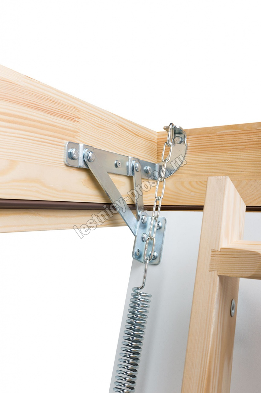 Двухсекционная раздвижная чердачная лестница LDK предназначена для помещений, где недостаточно места для складных лестниц. Данная модель также хорошо сохраняет тепло (толщина крышки с утеплителем – 36 мм), проста, удобна и безопасна в использовании, как и лестницы Smart и Komfort, но в тоже время позволяет максимально экономить драгоценное свободное пространство в доме. Крышка люка облицована ДВП белого цвета, что делает ее практически незаметной при установке в светлом или белом потолке. Для большего удобства и безопасности эксплуатации лестница LDK оснащена боковым металлическим поручнем и противоскользящими выемками на ступенях.