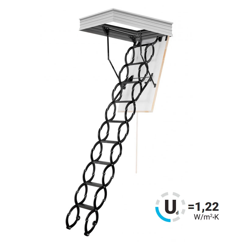 Все элементы лестницы выполнены из экологически чистых материалов и обработаны веществами, не содержащими тяжелых металлов. На ступенях антискользящие насечки. Короб лестницы изготовлен из металла. Термоизоляционная крышка типа "сэндвич" утеплена пенопластом, облицована с двух сторон ДСП белого цвета. Короб люка с уплотнителем. В комплекте деревянный стержень для открывания лестницы.