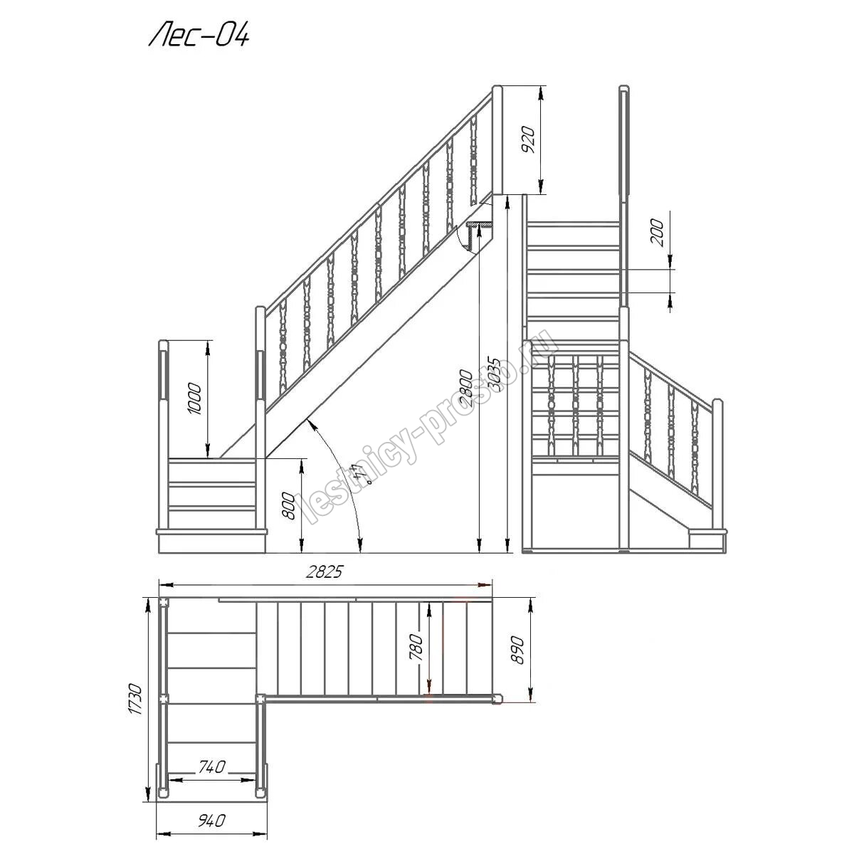 Деревянная межэтажная лестница ЛЕС-04, Бук