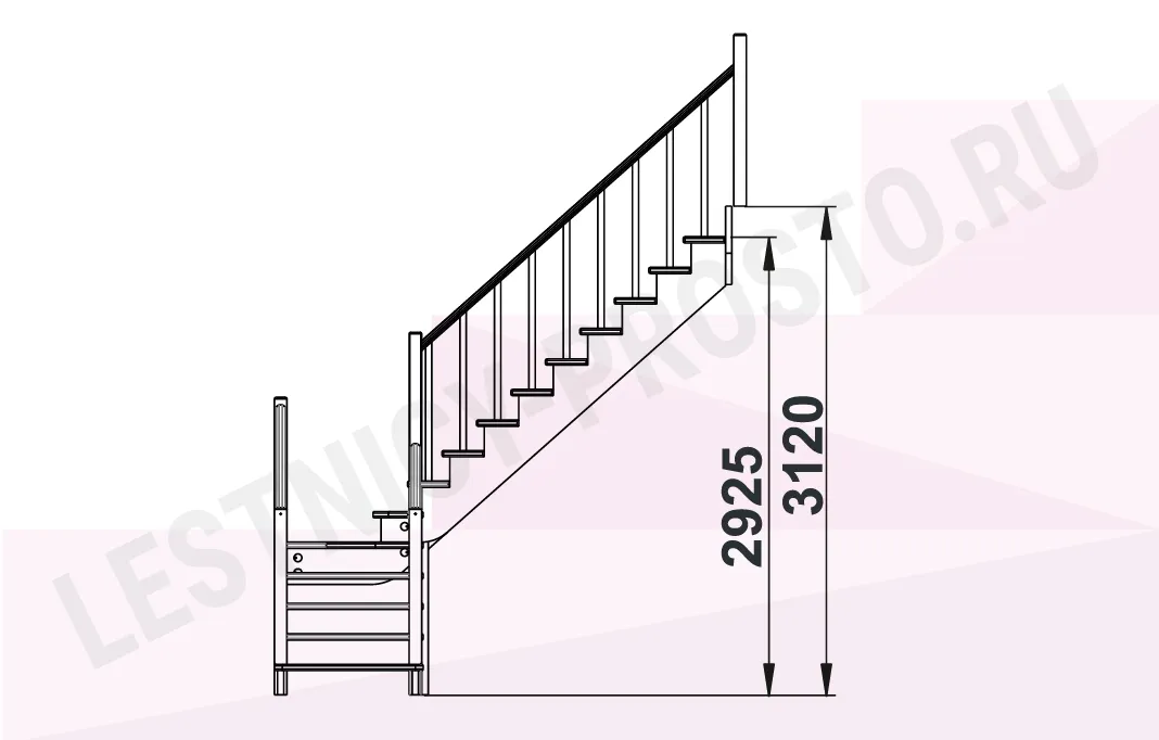 Высота лестницы 2925 - 3120 мм