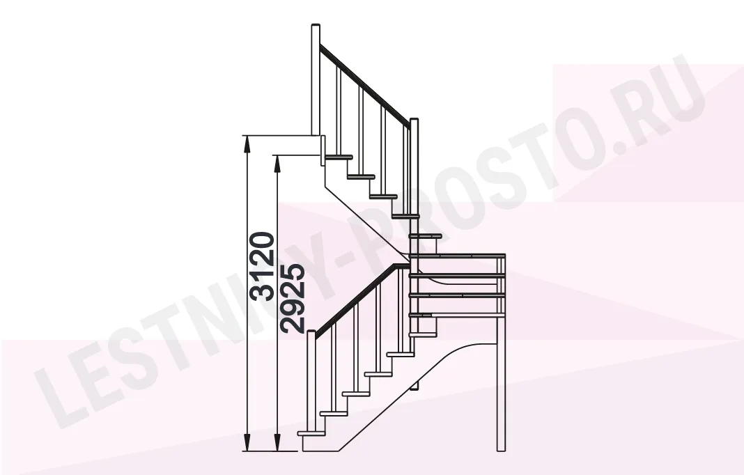 Лестница К-033М с поворотом налево