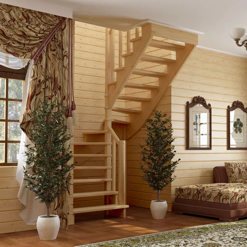 Ступени и поручень лестницы изготовлены из бука, остальные элементы из сосны.