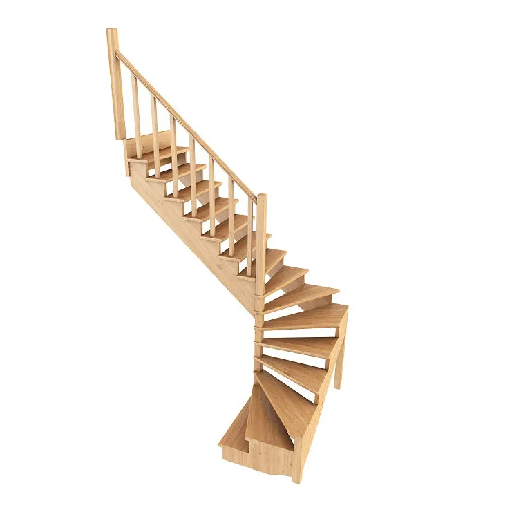 Ступени и поручень лестницы изготовлены из сращенного дуба; тетивы, столбы, балясины - из сосны. Возможно изготовление данной модели полностью из дуба. Базовый комплект включает в себя деревянные элементы лестницы и ограждения без какого-либо покрытия.