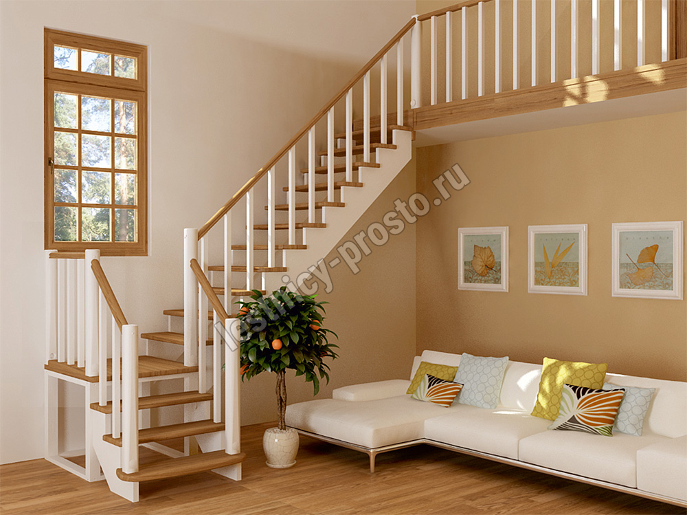 Ступени и поручень лестницы изготовлены из дуба, остальные элементы из сосны.