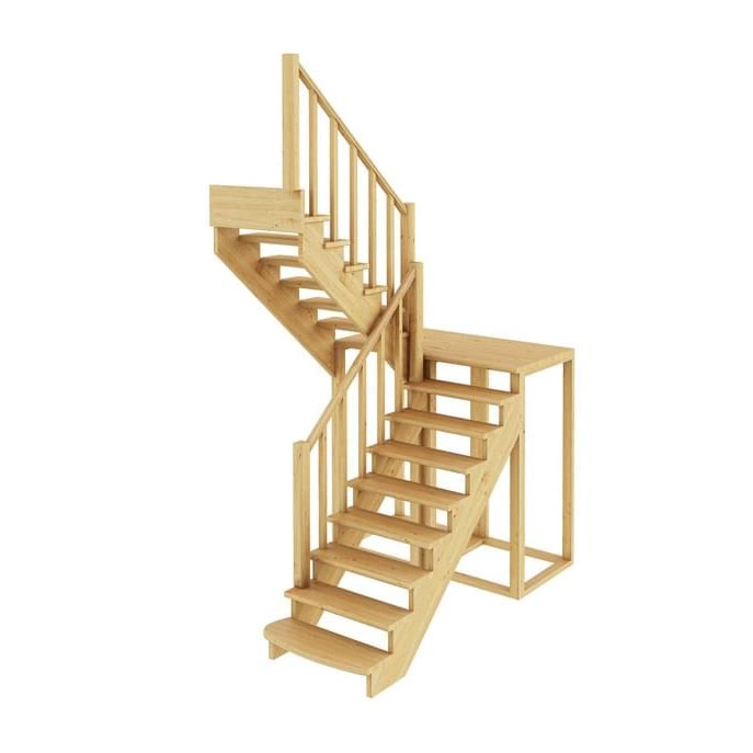 Базовый комплект включает в себя деревянные элементы лестницы с подступёнками и ограждения без какого-либо покрытия. Стандартное ограждение можно заменить любым на ваш вкус (стоимость может измениться).