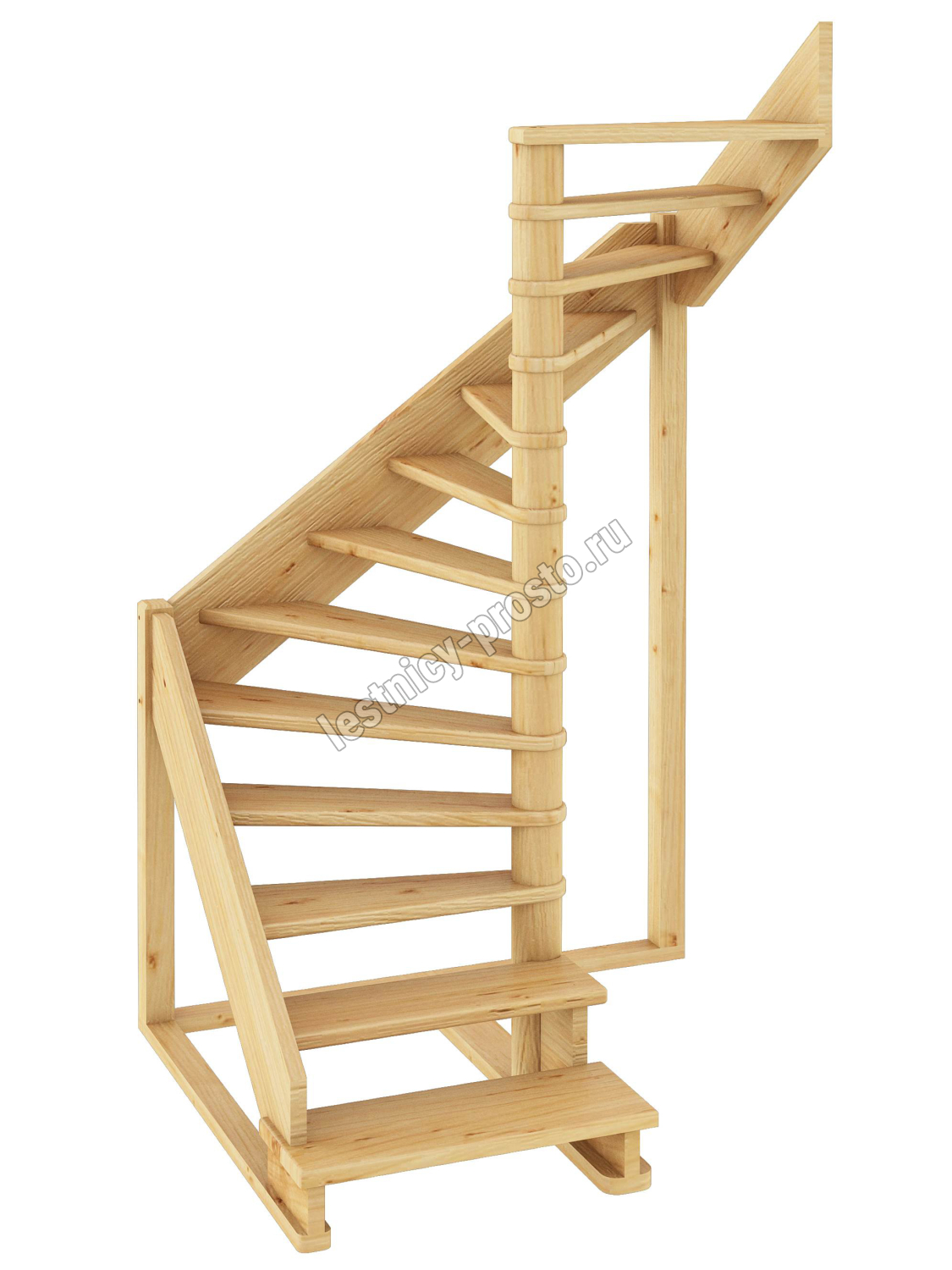 В производстве лестницы ЛС-01м под покраску используется сосна с небольшими изменениями цвета, что практически не влияет на ее механические свойства и почти незаметно при покраске в темные цвета. Базовый комплект включает в себя деревянные элементы лестницы без какого-либо покрытия.