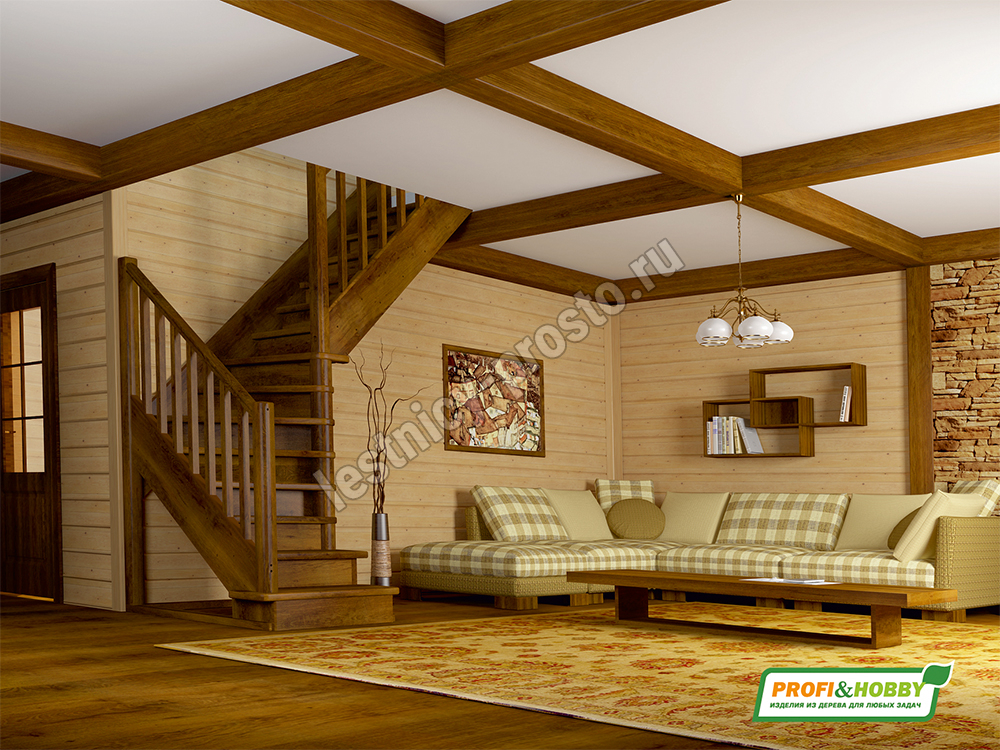 В производстве лестницы ЛС-225м под покраску используется сосна с небольшими изменениями цвета, что практически не влияет на ее механические свойства и почти незаметно при покраске в темные цвета. Базовый комплект включает в себя деревянные элементы лестницы и ограждения без какого-либо покрытия.