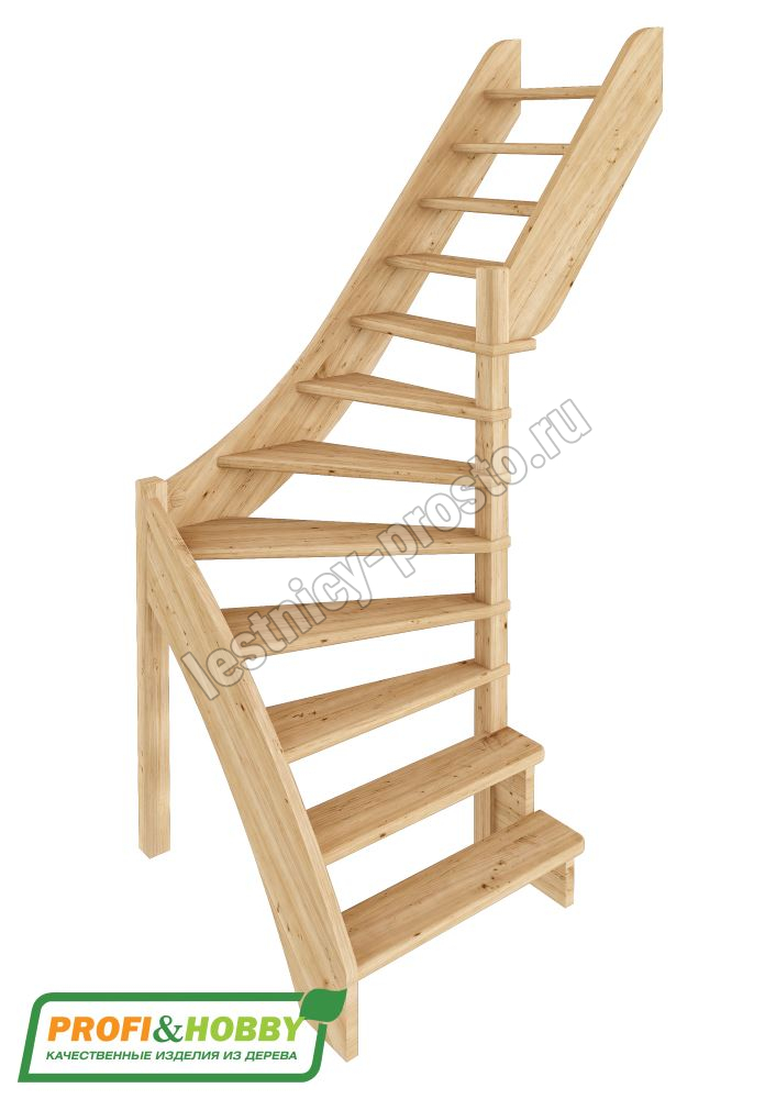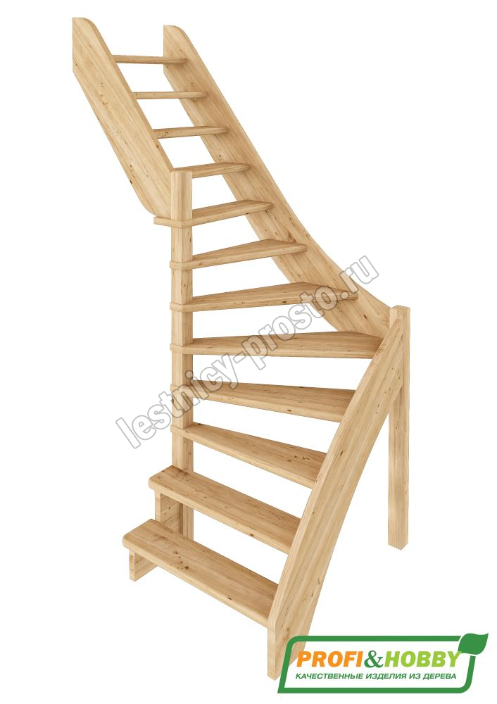 Базовый комплект включает в себя деревянные элементы лестницы без какого-либо покрытия.
