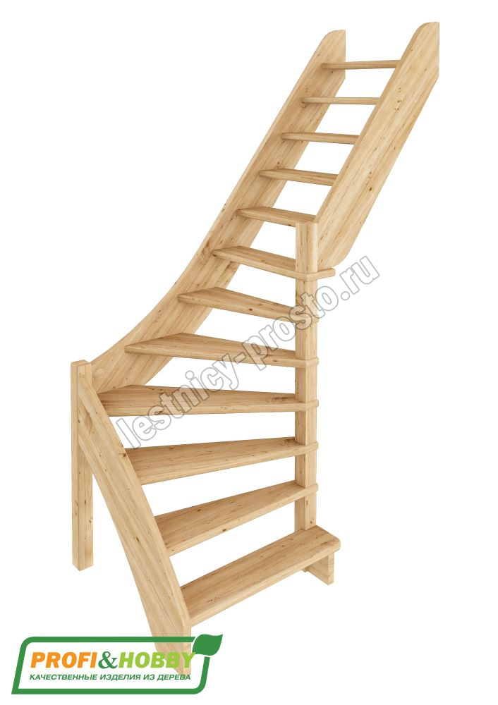 Базовый комплект включает в себя деревянные элементы лестницы без какого-либо покрытия.