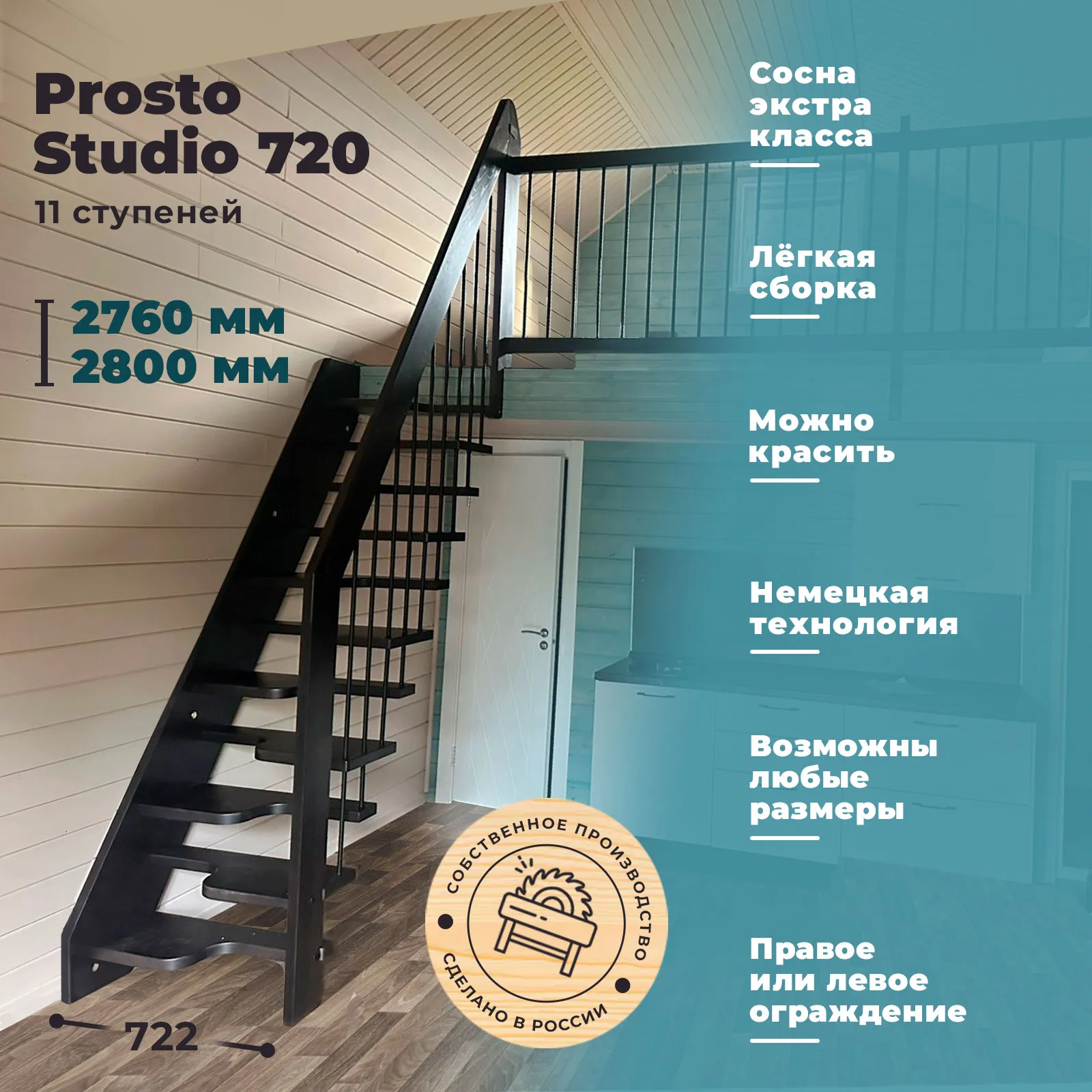 Надёжная современная лестница выполнена по немецкой технологии. Стоимость указана для лестницы с ограждением (с одной стороны); Поставляется в разобранном виде, в комплекте необходимый крепёж; Лестницу можно собрать самостоятельно; Так же, вы можете заказать услугу монтажа нашими специалистами; 4 вида породы дерева для изготовления лестницы: сосна, бук, ясень, дуб; возможна комбинированная лестница: из сосны (ступени бук, ясень, дуб); Деревянные элементы без какого-либо покрытия, отшлифованы, готовы к покраске. За дополнительную плату, вы можете изменить любые параметры, а именно: увеличить глубину ступени; увеличить ширину марша до 900 мм. и выше; заказать подступенки к лестнице; заказать отделку перекрытия (между 1-м и 2-м этажами); изготовить дополнительный промежуточный марш; заказать ограждение 2-го этажа; покраска в любой цвет или несколько цветов или покрытие защитными средствами; дополнение балясины из нержавеющей стали деревянными элементами; покраска балясин из нержавеющей стали порошковой краской в цвет RAL.