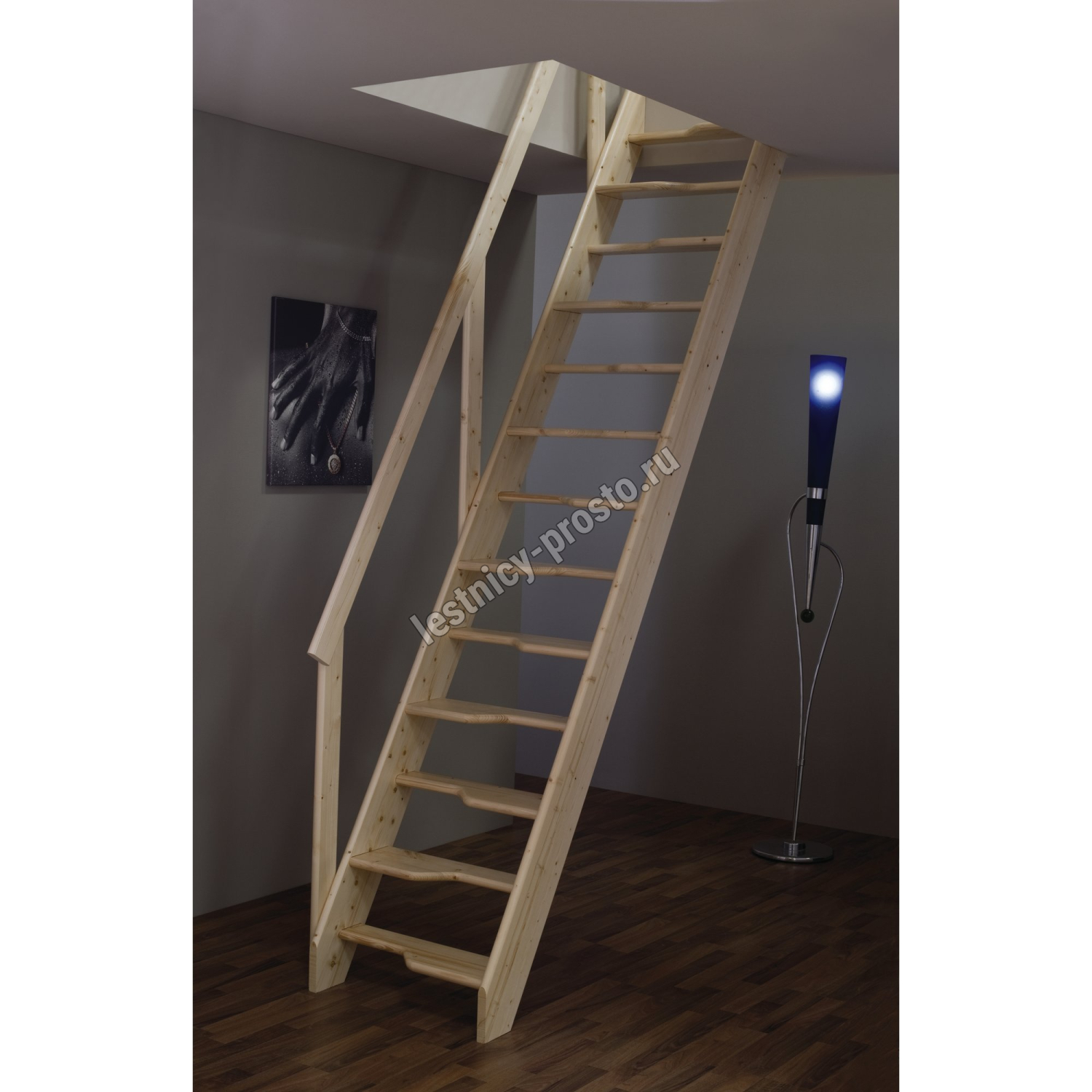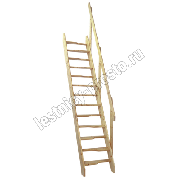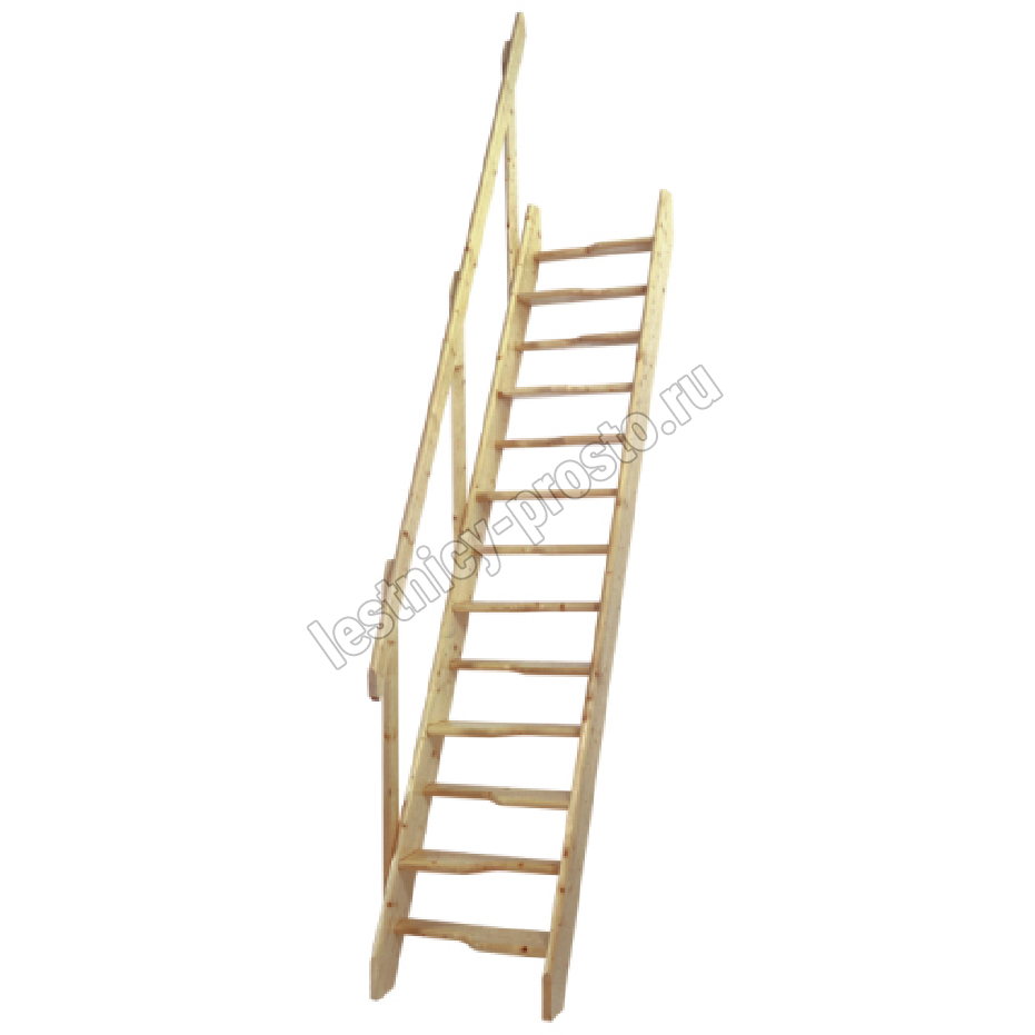 Базовый комплект включает в себя деревянные элементы лестницы и поручень без какого-либо покрытия.