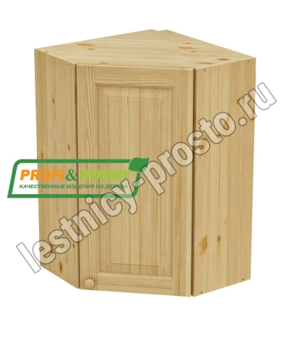Шкаф навесной угловой 600 х 600 х 300 х 900 филенка, сосна, бесцветный акриловый лак