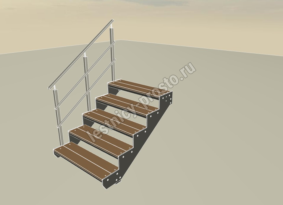 Надежный красивый каркас из толстого стального листа толщиной 8мм с оригинальным дизайном. Покрытие порошковое, очень прочное и долговечное. Все детали каркаса крепятся с помощью болтов, благодаря чему Вы можете собрать каркас самостоятельно без применения сварки. Ступени лестницы состоят из металлической рамки, обеспечивающей необходимую прочность, и покрытия из террасной доски ДПК (древесно-полимерный композит). Ступени не боятся воды и мороза, не теряют со временем свой внешний вид и не требуют ухода. Под заказ, возможно изготовление ступеней из других материалов, таких как: рифленая сталь, лотки под плитку, решетчатый настил, дерево. Базовое ограждение: крашеное или из полированной нержавеющей стали.