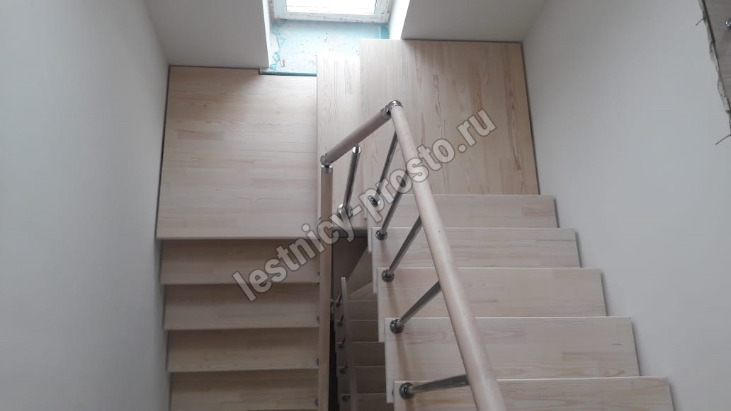 Ступени лестницы изготовлены из лиственницы категории А/В паркетной склейки без какого-либо покрытия. Вы можете заказать у нас предварительную профессиональную покраску деревянных элементов материалами БИОФА в широкий спектр цветов (стоимость зависит от количества ступеней).