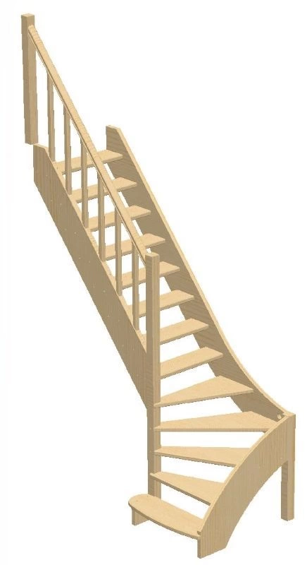 Поворот реализован посредством поворотных ступеней, высота поворота определяется параметрами вашего помещения и размерами проёма.