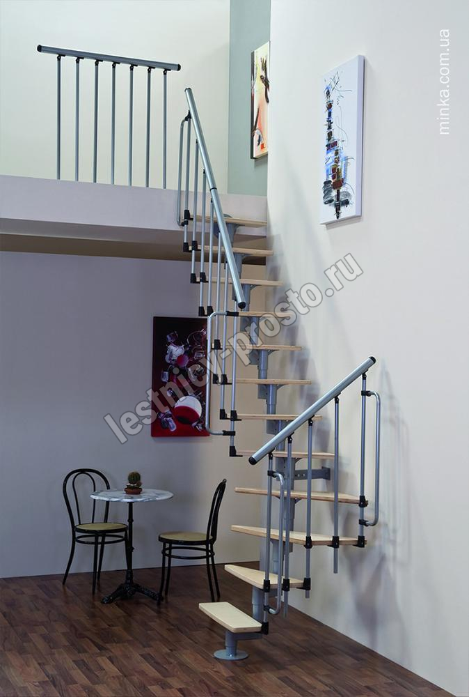 Алюминиевый поручень лестницы Joker 600 покрыт порошковой краской в цвет конструкции. Ступени изготовлены из берёзы и покрыты защитным износостойким фирменным лаком MINKA.