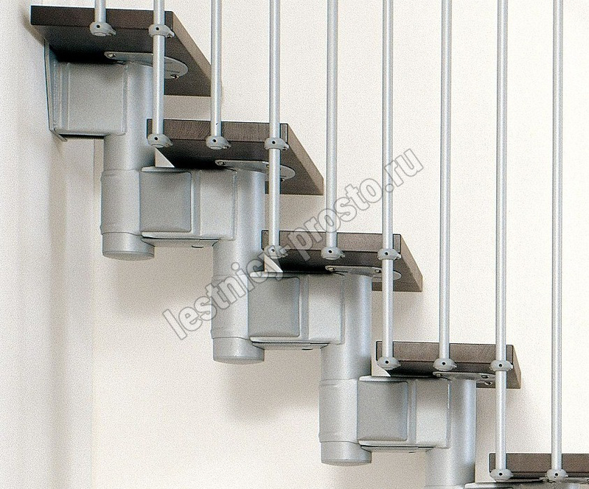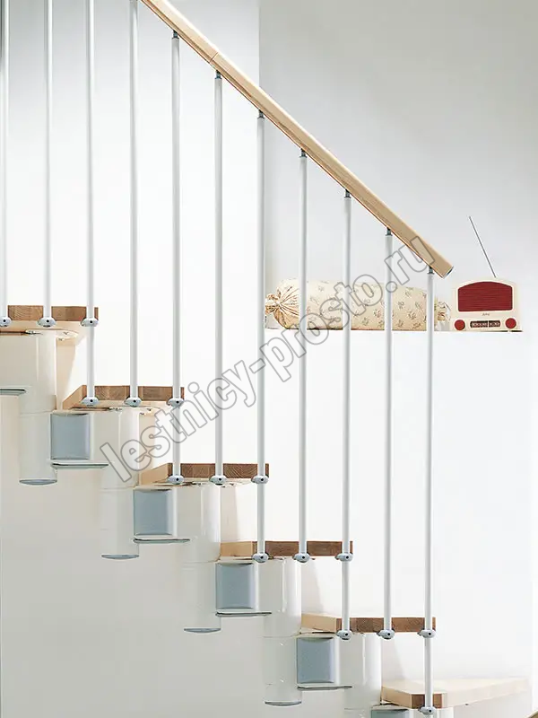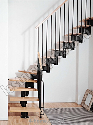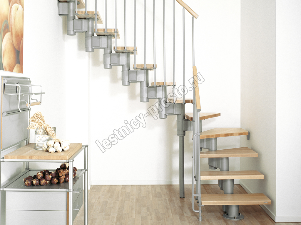 Красивая комфортная лестница с уникальной модульной конструкцией, которая позволяет собрать большое число модификаций, подходящих под ваш проём и другие условия помещения. Возможные варианты сборки лестницы смотрите в блоке "чертежи и схемы". При монтаже модульной лестницы KOMPACT, вы можете варьировать высоту шага и проступь, получив точную необходимую высоту и габариты. Ступени выполнены из массива бука и покрыты качественным износостойким лаком. Базовая комплектация позволяет получить лестницу под высоты этажа в диапазоне 2250 - 3030 мм, кроме того, установив дополнительный комплект увеличения высоты, можно поднять высоту лестницы до 3730 мм. Каркас и стойки ограждения выполнены из пластифицированного металла.