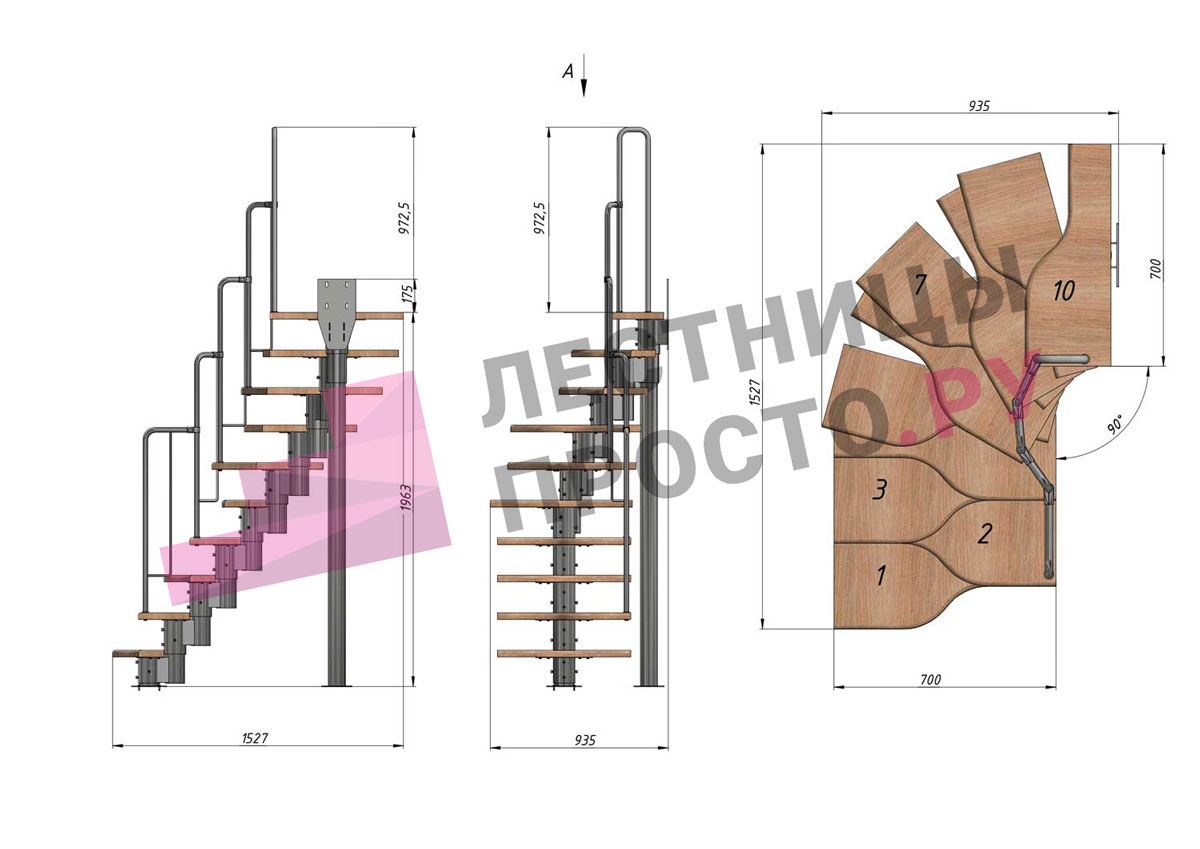 - Возможность устанавливать лестницу как прямую, так и с поворотом внизу или вверху; при этом нужно понимать, что поворот менее удобен, чем прямой участок лестницы.