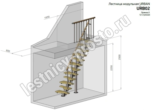 Высота лестницы 2340 - 3360 (13 ступеней) мм