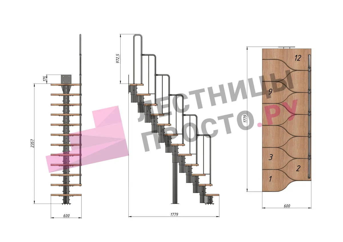 соответствует картинке, но вы не ограничены в его выборе. Лестницу можно приобрести и без ограждения, и с любым другим. Устанавливать на такую лестницу можно почти всё, начиная от классических деревянных балясин и заканчивая эксклюзивными коваными изделиями.