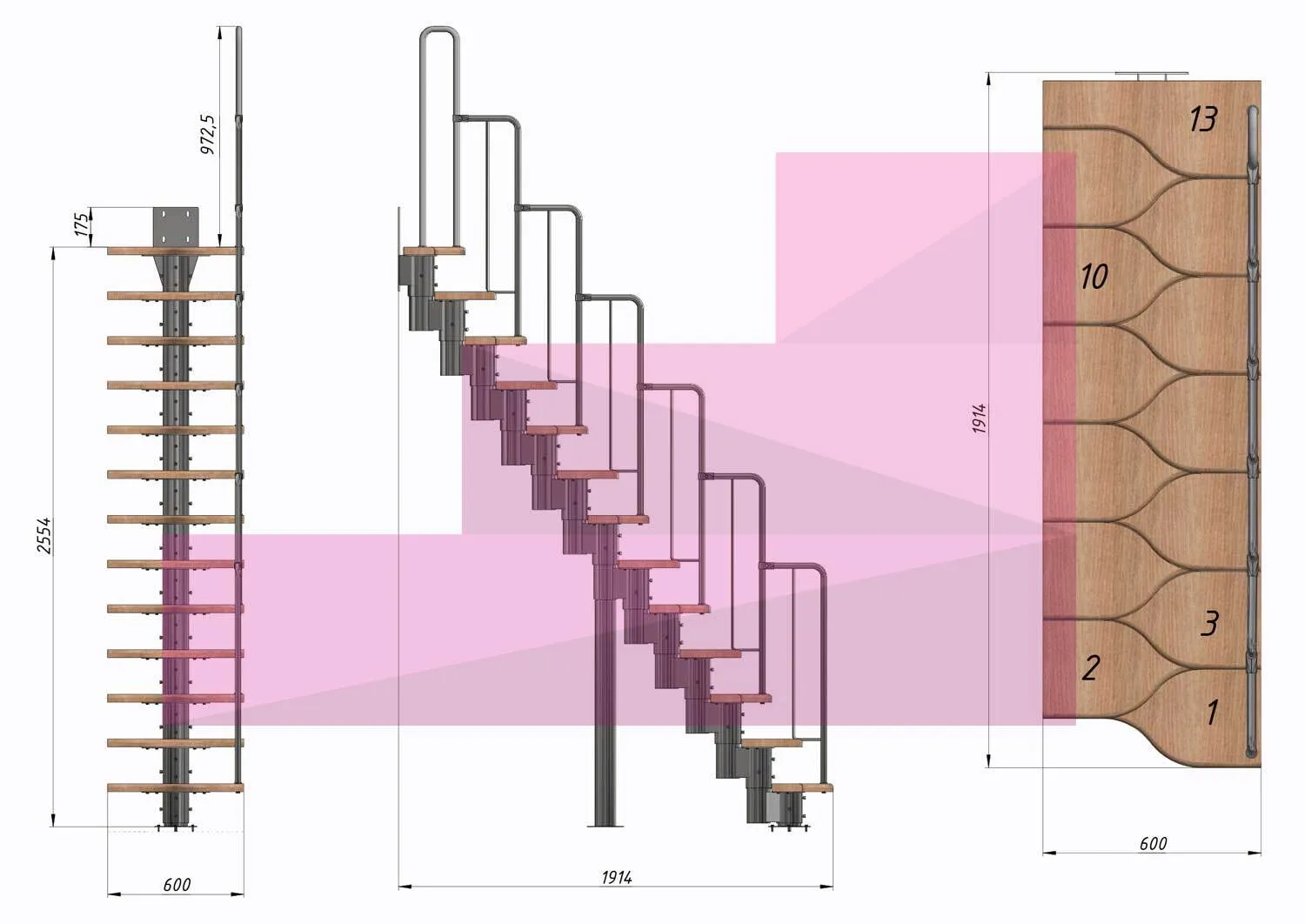 соответствует картинке, но вы не ограничены в его выборе. Лестницу можно приобрести и без ограждения, и с любым другим. Устанавливать на такую лестницу можно почти всё, начиная от классических деревянных балясин и заканчивая эксклюзивными коваными изделиями.
