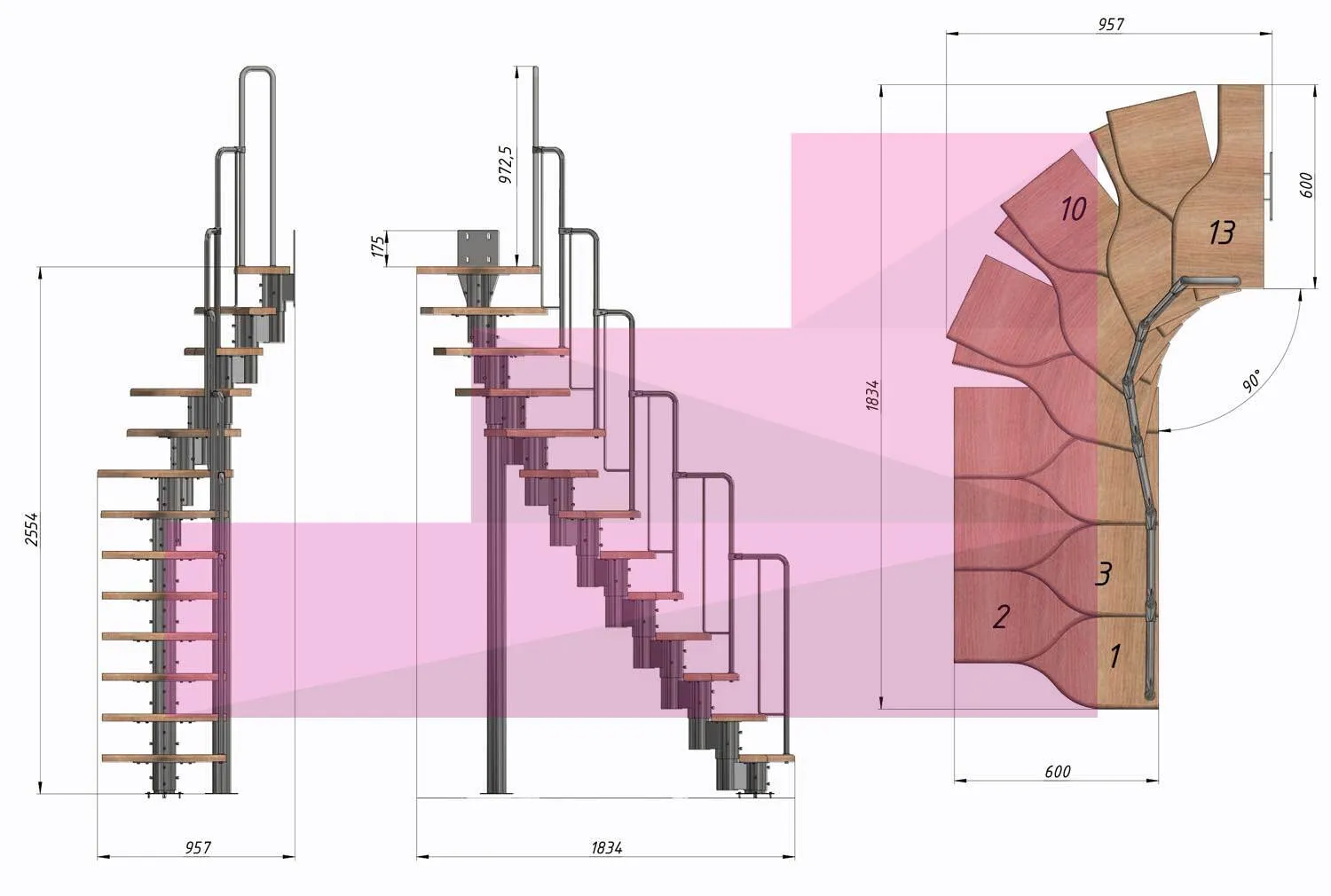 - Регулируемый по высоте в пределах 180-240 мм модуль. Большой диаметр и толщина металла деталей обеспечивают жесткость и прочность конструкции. Регулировка каждого модуля по высоте позволяет легко приспособить лестницу под ваше помещение.