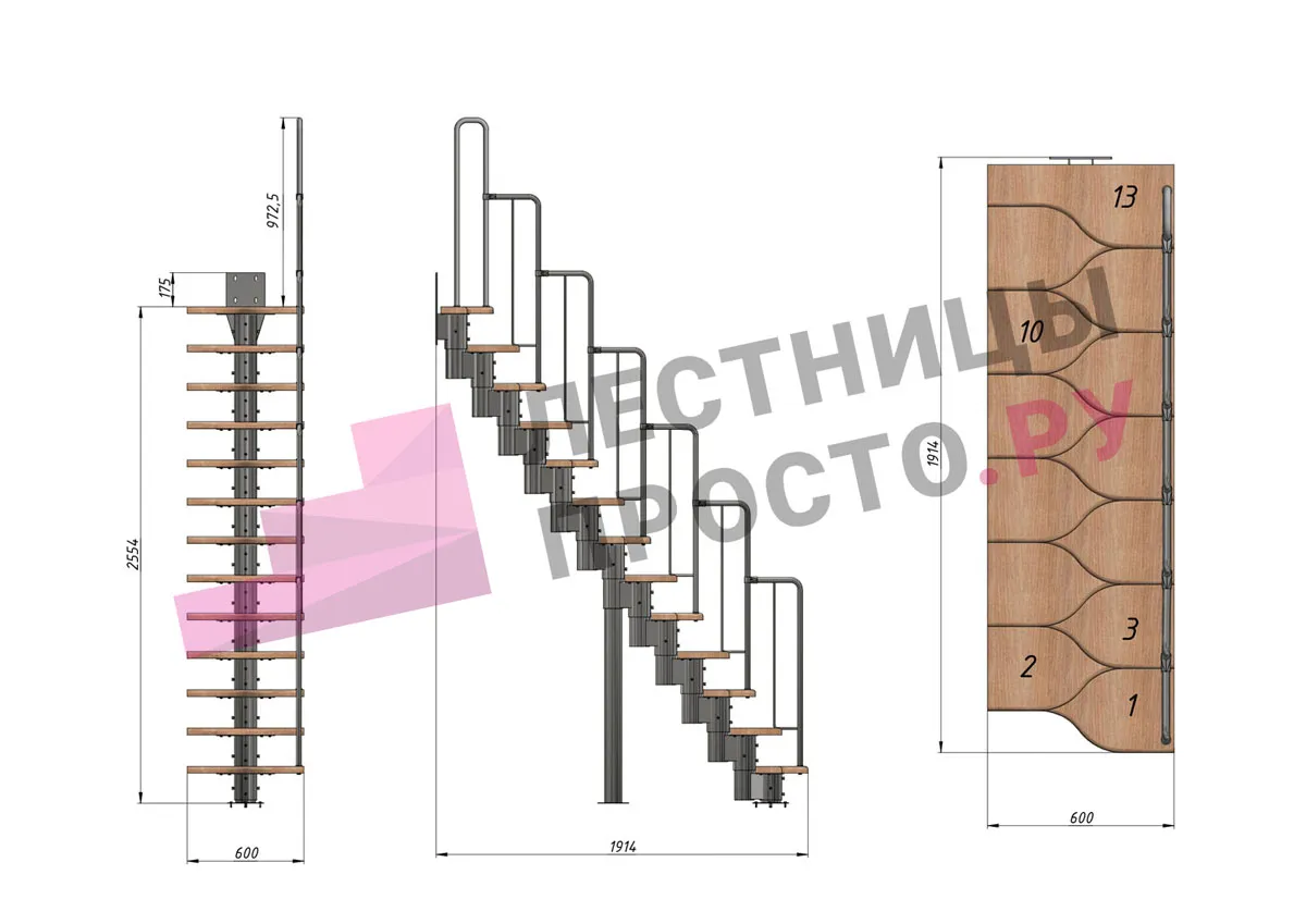 Высота лестницы 2340 - 3360 (13 ступеней) мм