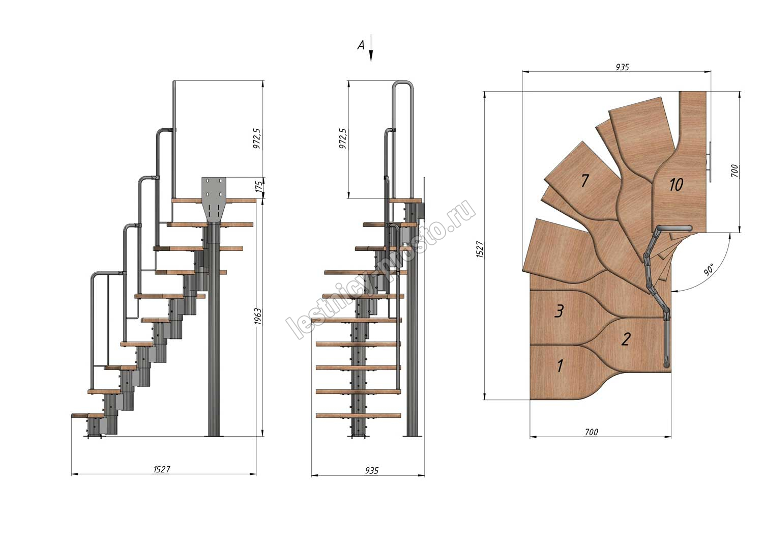 - Возможность устанавливать лестницу как прямую, так и с поворотом внизу или вверху; при этом нужно понимать, что поворот менее удобен, чем прямой участок лестницы.