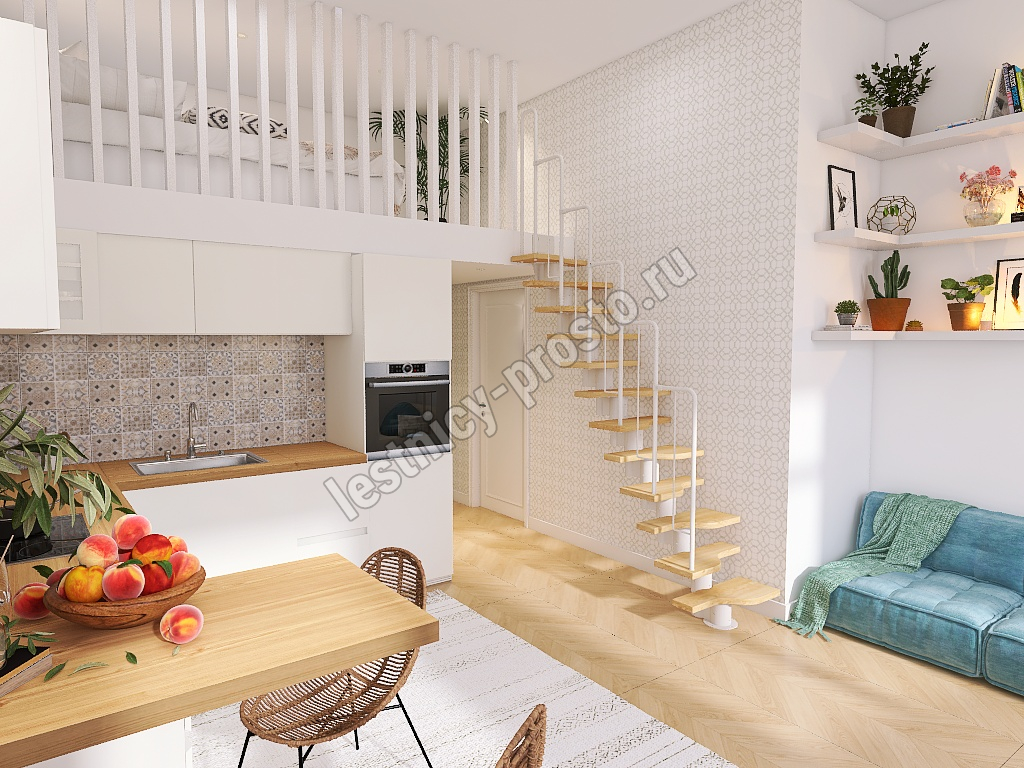 Лестница Prosto Urban White гусиный шаг 700 мм, h198-288 см (11 ступеней), ясень