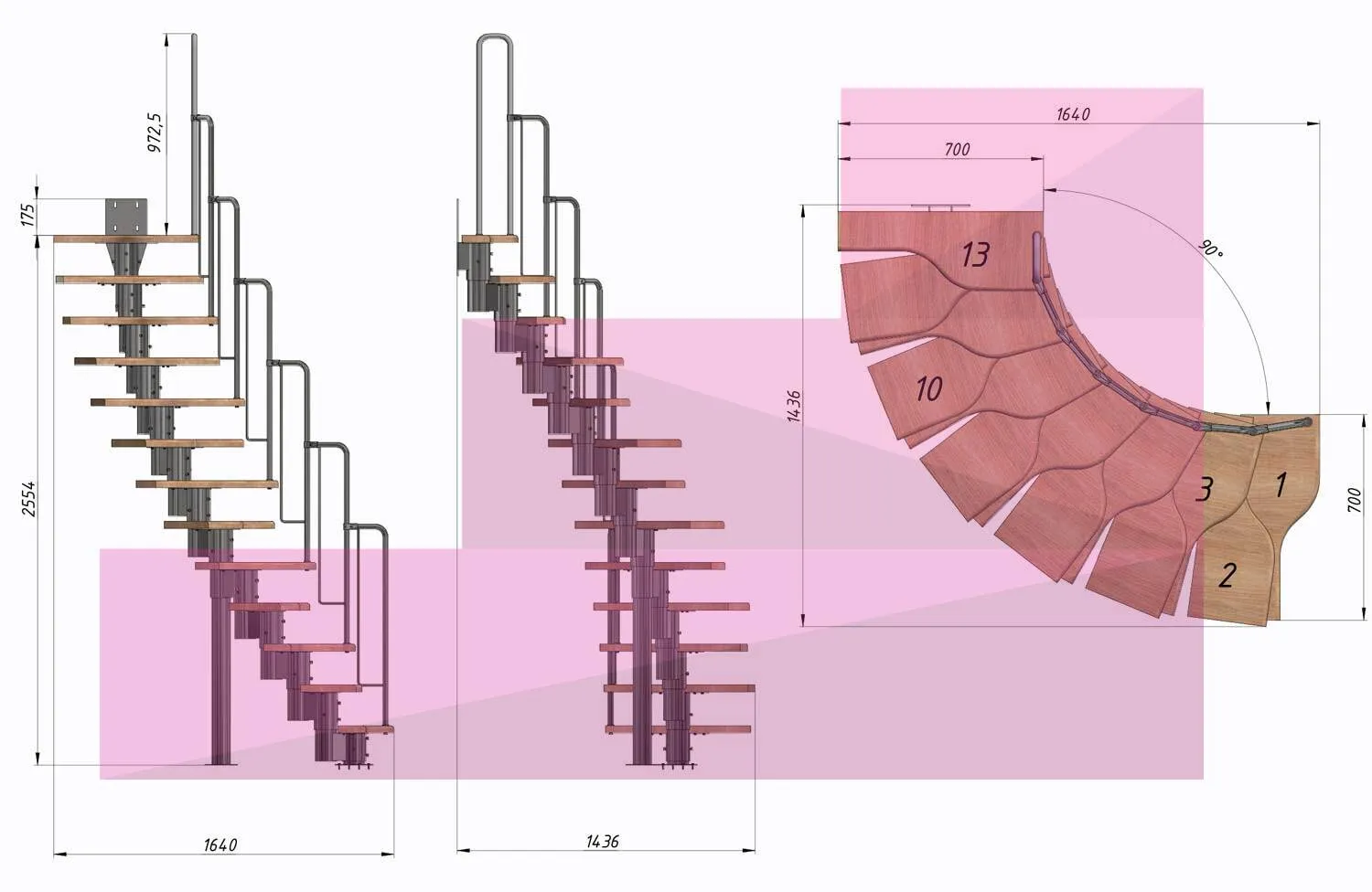 Высота лестницы 2340 - 3360 (13 ступеней) мм