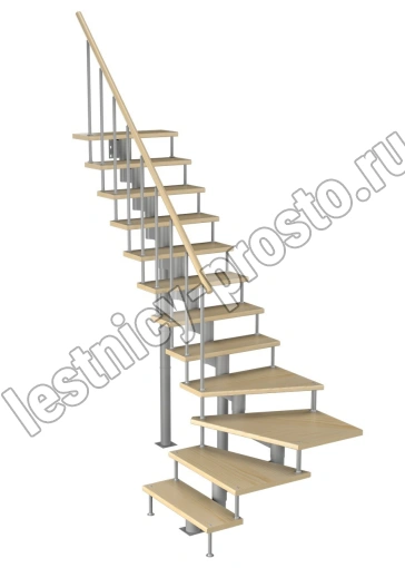 Модульная лестница Фаворит 180 2160-2280, Серый, Сосна, Нержавеющая сталь