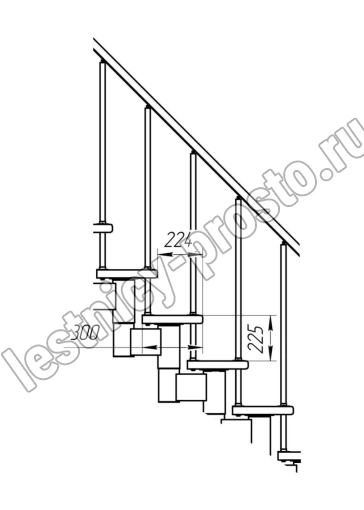 Модульная лестница Комфорт 225 2700-2820, Черный, Сосна, Нержавеющая сталь