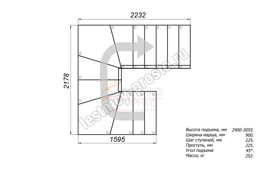 Модульная лестница Спринт 225 2925-3055, Серый, Сосна, Нержавеющая сталь