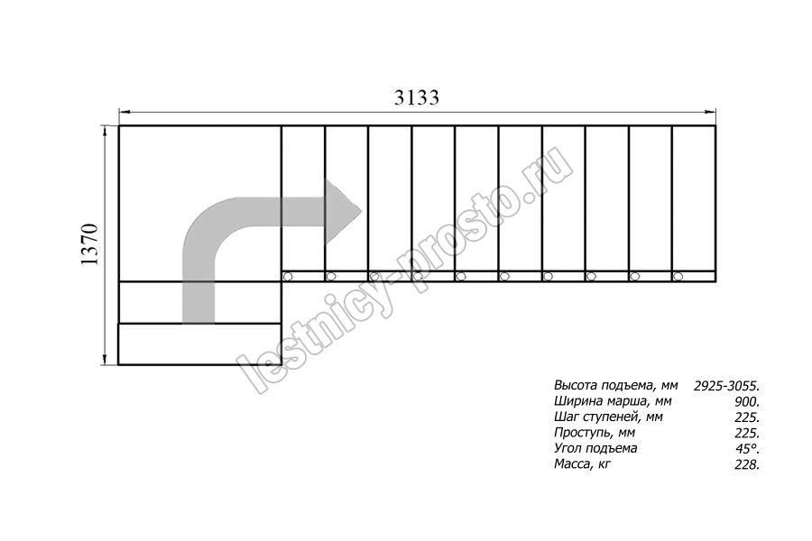 Модульная лестница Статус 225 2925-3055, Черный, Лиственница, Крашеная