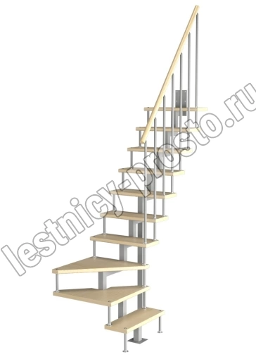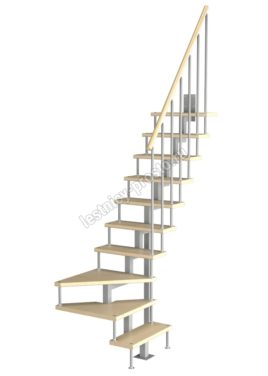 Модульная малогабаритная лестница Компакт 2250-2475, Серый, Сосна, Нержавеющая сталь