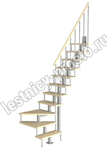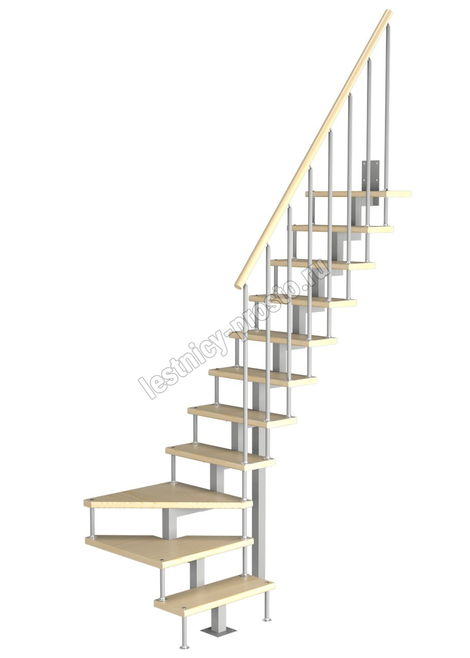 Модульная малогабаритная лестница Компакт 2475-2700, Серый, Лиственница, Нержавеющая сталь