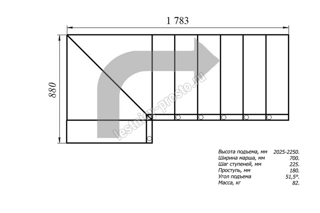 Количество ступеней на первом и втором марше может меняться между собой в зависимости от размера проема, при этом общее количество ступеней не меняется!!!