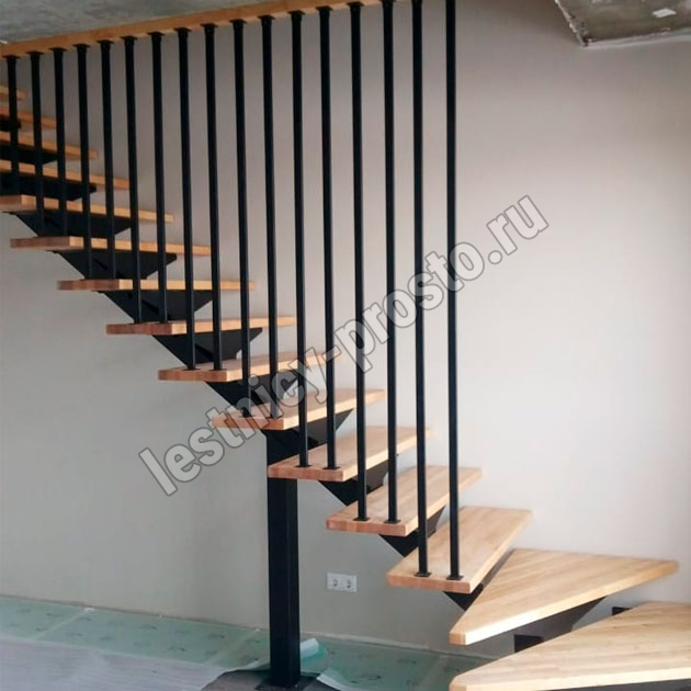 | Лестница PROSTO MONO Г-образная h315 см, ступени лиственница |