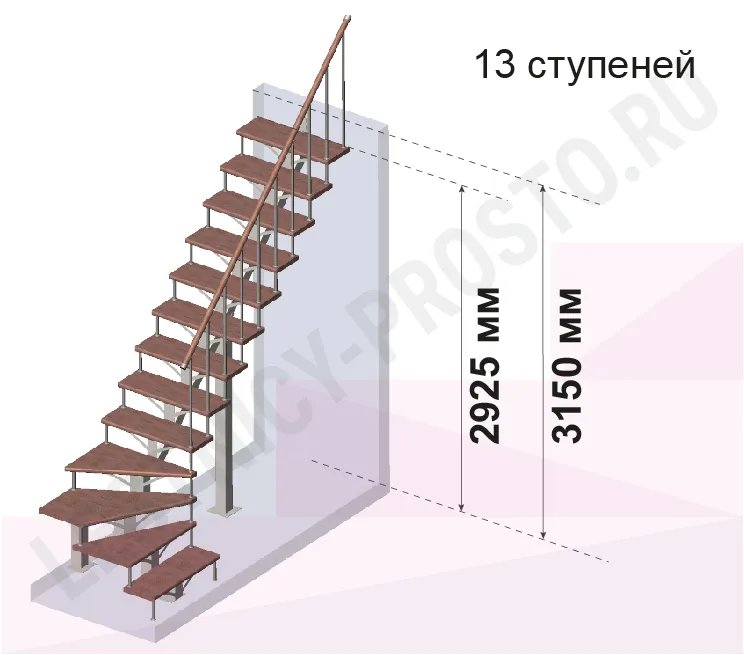 | Лестница PROSTO MONO Г-образная h315 см, ступени хвоя |
