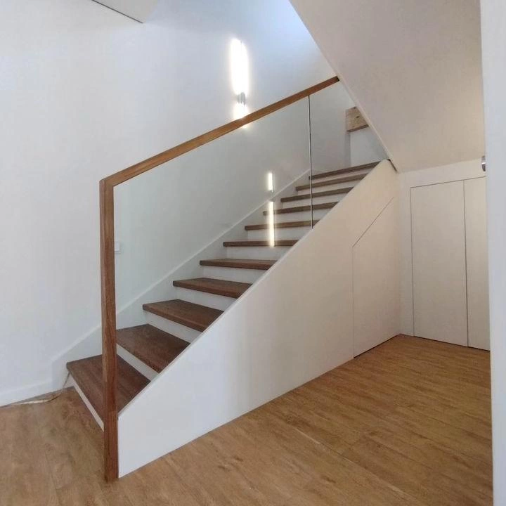 Ограждение - ударопрочное стекло и дуб.