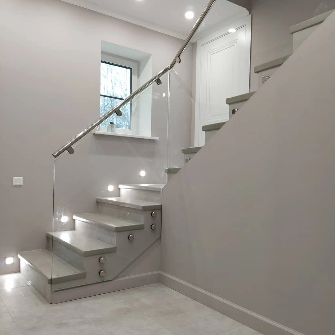Ограждение из ударопрочного стекла, поручень пвх, стойки из нержавеющей стали