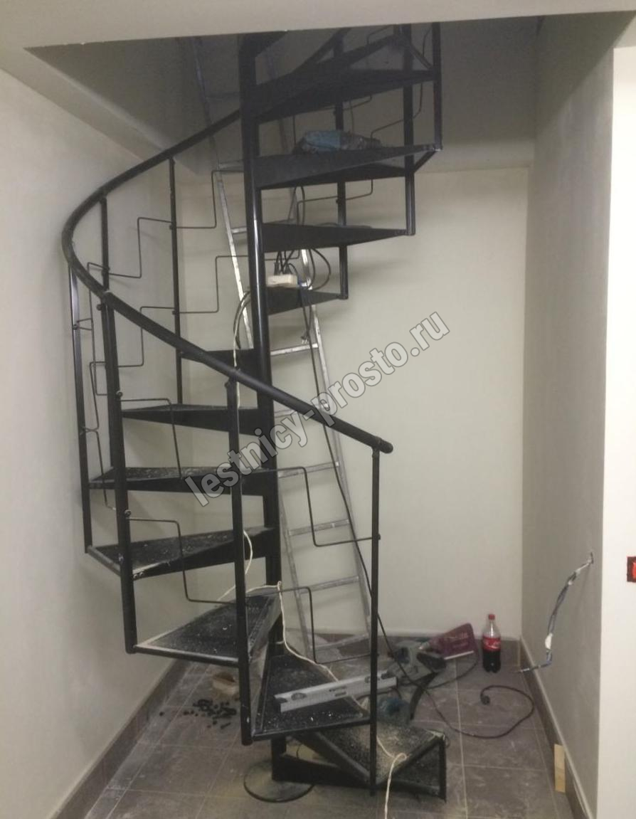 Компактная металлическая винтовая лестница КАСКАД. Ступени лестницы покрыты специальным антискользящим материалом.