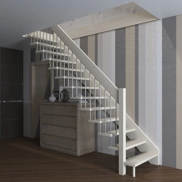 Перила состоят из стальных балясин, окрашенных в черный (RAL 9017), белый (RAL 9010) или серый (RAL 9006). Концы черные для черной лестницы и серые для серой и белой лестниц.