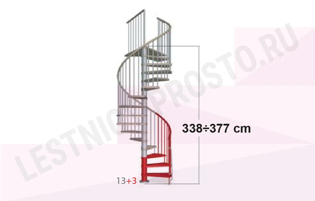 Высота лестницы регулируется при сборке в пределах 2530 - 3060 мм. С помощью дополнительных секций высоту базовой модели можно увеличить до 3770 мм.
