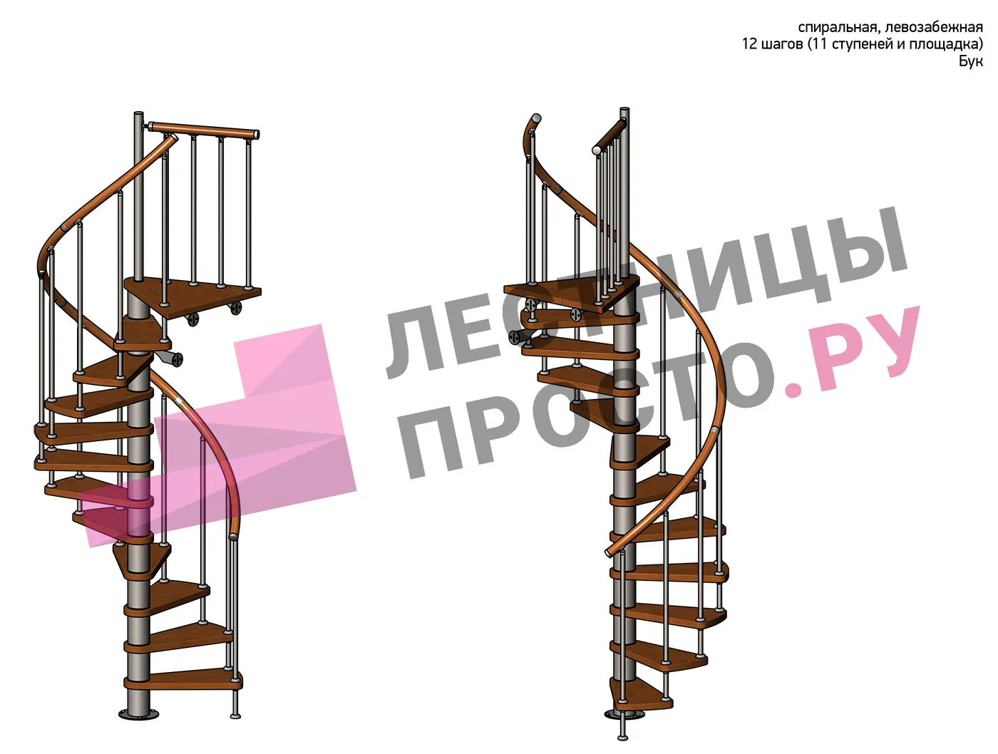Решение о направлении поворота принимается при сборке - универсальная конструкция позволяет собрать правозабежную и левозабежную лестницы. Высота ступеней регулируется с шагом 3 мм. в пределах 217-247 мм., благодаря чему, лестница прекрасно подгоняется под необходимую высоту.