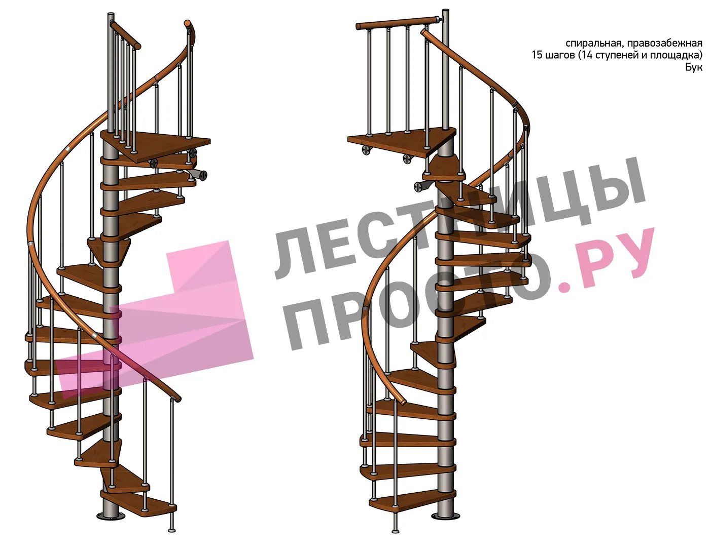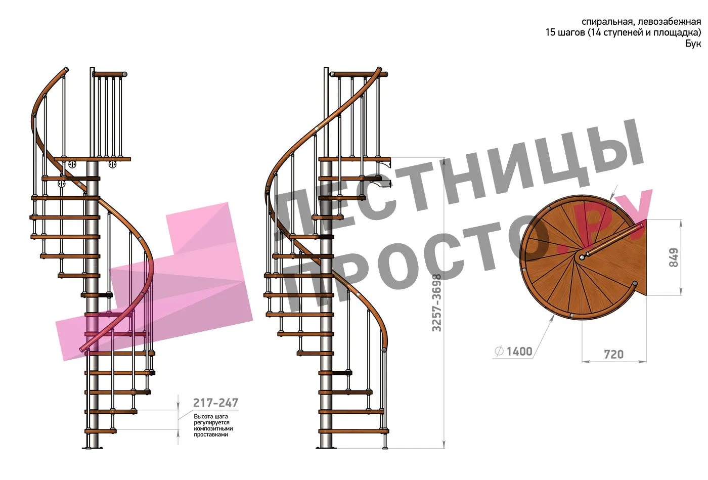 Винтовая лестница Prosto Spiral Black D140см, h325.7-369.8 см, бук