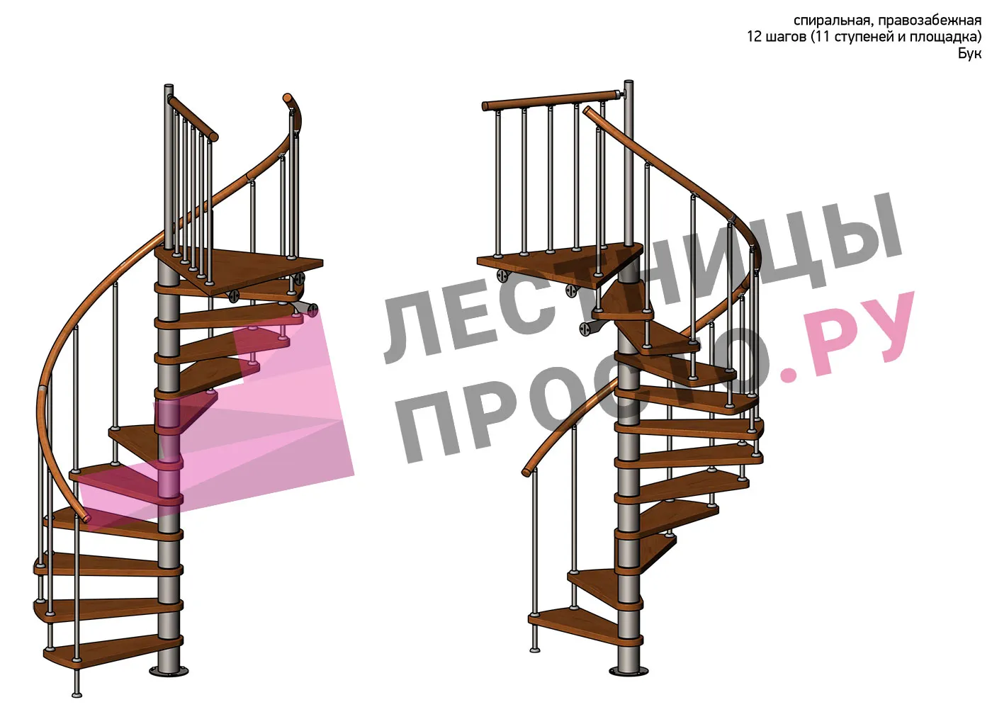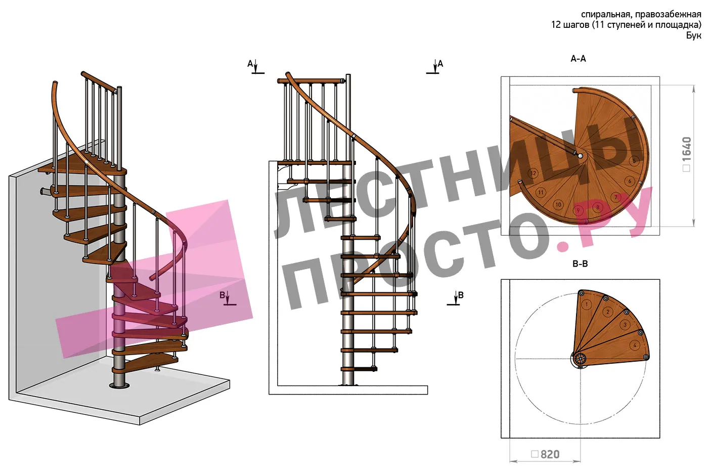 Винтовая лестница Prosto Spiral Black D160см, h260.5-304.6 см, бук