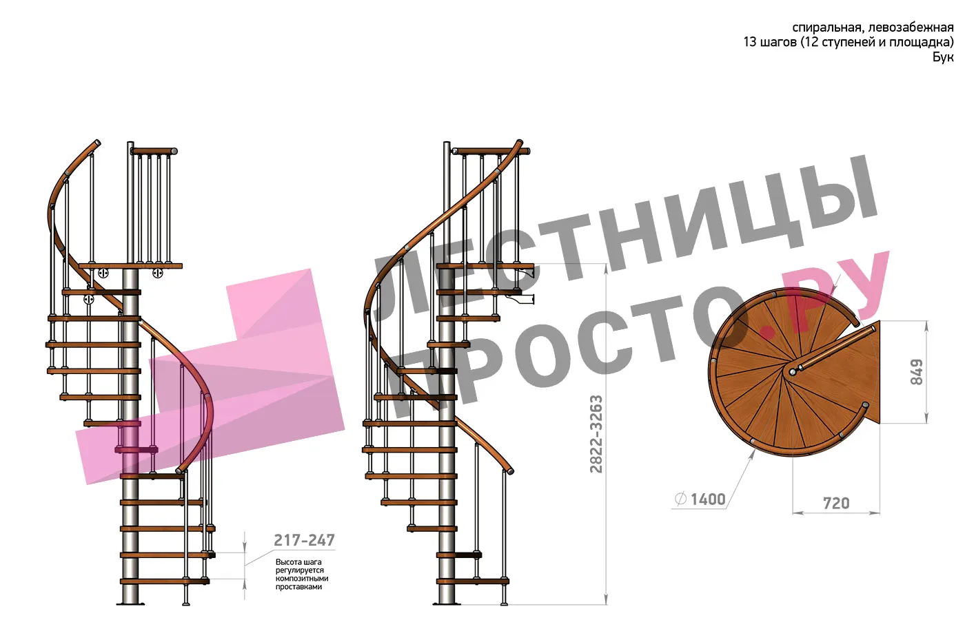 | Винтовая лестница Prosto Spiral Black D140см, h282.2-326,3 см, бук |