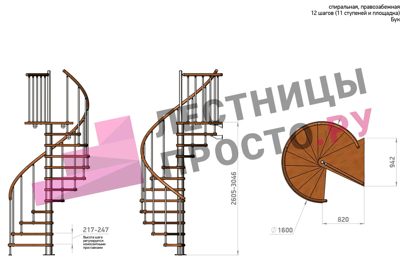 | Винтовая лестница Prosto Spiral Black D160см, h282.2-326,3 см, бук |
