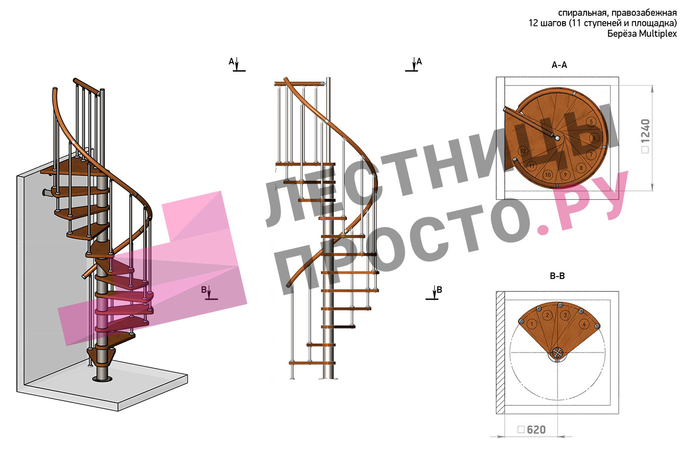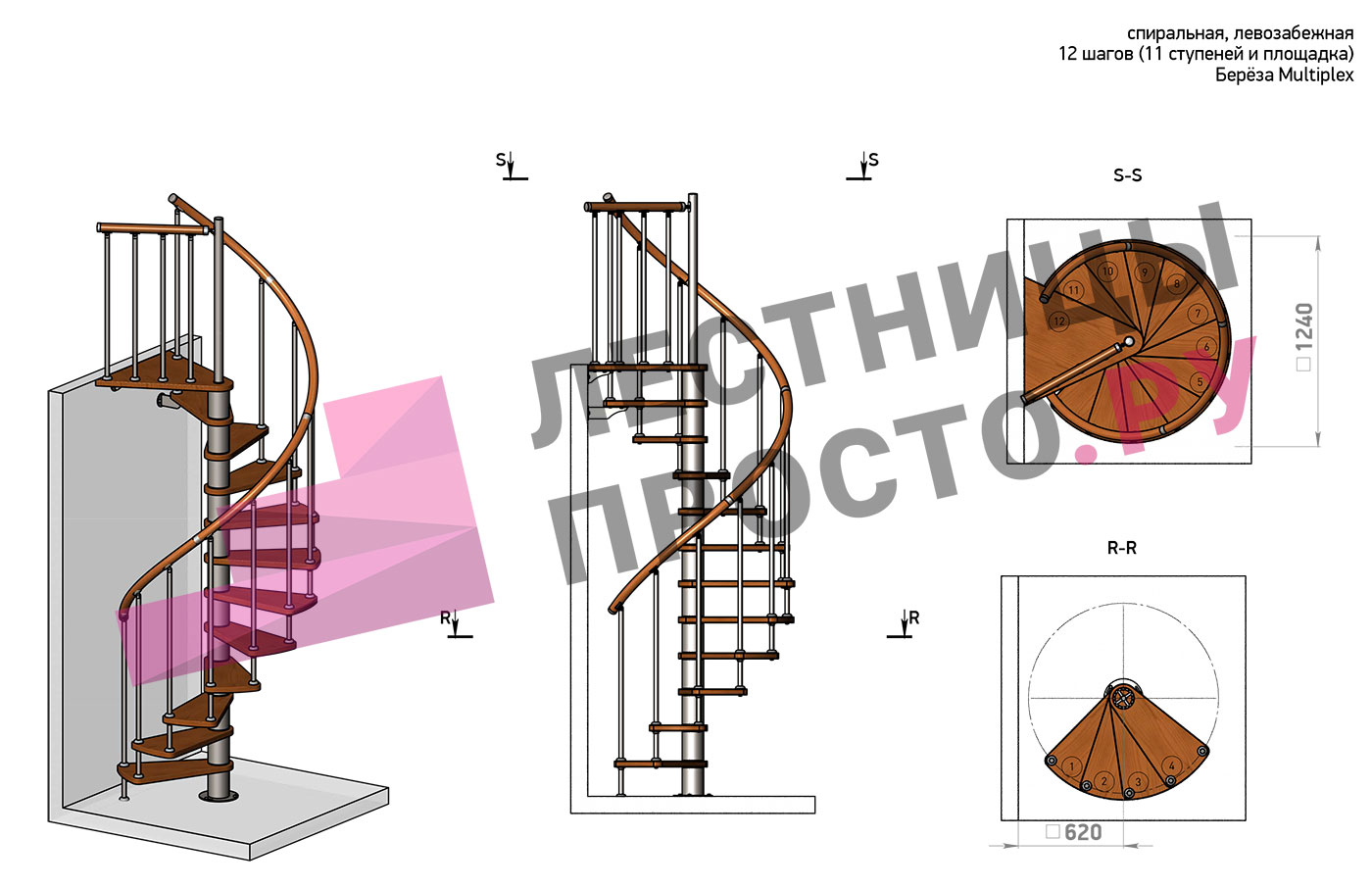 Ступени лестницы выполнены из берёзы по технологии MULTIPLEX.